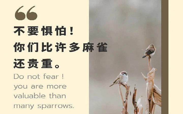 3. 「不要怕」(太十31)一切的遭遇。我们在天父的眼中比麻雀贵重得多,天父尚且不让麻雀随便死亡,更何况我们呢?因祂爱我们,保护我们如同保护眼中的瞳人(申三二10;亚二8)。