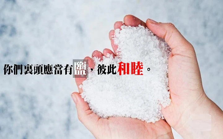 「盐本是好的,若失了味,可用什麽叫它再咸呢?你们裡头应当有盐,彼此和睦。」(可九50) 【钥词】你们裡头应当有盐 《马可福音》第九章记载主教导门徒,要彼此接纳和包容,并且裡头应该有「盐」,产生彼此和睦。在此主提醒他们两件事: