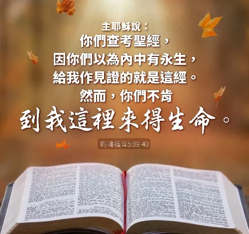 「你们查考圣经,因你们以为内中有永生;给我作见证的就是这经。然而你们不肯到我这裡来得生命。」(约五39~40节) 【每日一词】到我这裡来得生命 犹太人以他们的宗教为夸口,特别是以明白旧约为自豪。然而主指出他们并不真正明白旧约的内容。虽然他们很注重读圣经,在殿裡读,在家裡也读,但是目标错误,态度错误和方法错误。仅管他们努力、仔细研读,却无法读出基督,自然也得不着生命的供应。他们并非不知道读圣经,不仅是研究字句,更重要的乃是寻求其中的「永生」;可惜他们没有进一步的来到主的面前,所以他们即使把圣经研究透澈仍是枉然。同样的,我们千万不要像犹太人为查经而查经,结果只有「查考圣经」的动作,却没有经历圣经裡面的内涵,就是这位赐人生命的主。 我们读圣经应以认识基督为唯一的目标,因为圣经的内容乃是专一的为基督作见证。而我们每一次翻开圣经,要存着来遇见基督的态度和心情。因此,我们读经还不光只是寻求其中属灵的亮光和得着生命的供应;更重要的是学习来到祂面前,在爱中与祂相交,在光中与祂同行,让神的话支配、管理我们的全人。而我们如何读经最要紧的是要将我们的心专一的归向主;不要凭着头脑来理解圣经的道理,否则所得的只不过是字句、仪文。要凭着灵与生命来体验神活泼、有功效的话(来四12),因为祂的话就是灵、就是生命 (约六63)。 亲爱的,圣经对你是活的吗?神是否常藉着圣经向你说话?在读神的话你是否得着生命的满足和供应? 【查经若只用头脑,结果反而不好】 宋尚节博士有一个晚上聚会时,他从讲台后边跑出来,长袍裡塞了一本圣经,比着样子说:「查经,查经,越查知识越多,肚子越大;越大,越大,就成了犹大!」查经真是会叫头脑越过越大。圣经告诉我们说,知识是叫人自高自大;又说,字句是杀死人。主说:「你们查考圣经,然而你们不肯到我这裡来得生命。」查经是一件事,到主这裡来得生命又是一件事。 【每日一歌】耶稣我来 ➤ 点此诗歌网址 脱离捆绑、忧愁与黑影,