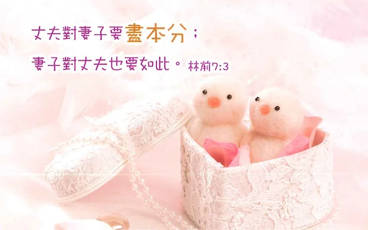 「丈夫当用合宜之分待妻子;妻子待丈夫也要如此。」(林前七3) 「夫妻不可彼此亏负,除非两相情愿,暂时分房,为要专心祷告方可;以后仍要同房,免得撒但趁着你们情不自禁,引诱你们。」(林前七5) 【每日一词】「合宜」和「亏负」 今日钥节指出夫妻在婚姻中彼此的责任: