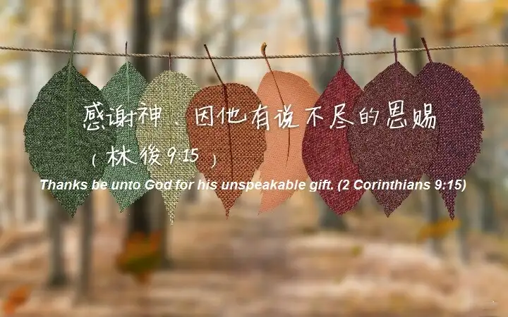 「感谢神,因祂有说不尽的恩赐!」(林后九15) 【每日一词】说不尽的恩赐 今日钥节指出保罗在这里从心底发出赞歎,来结束关乎基督徒奉献钱财的厚恩。本节的「说不尽的恩赐」,也可译为「无法表达的恩典」。「恩赐(charis)」在原文和「恩典」都是同一个字。保罗感谢神,因为神的「恩赐」在《哥林多后书》第八章和第九章圣经中实在太多了,如:神赐给马其顿众教会的恩(八1)、供给圣徒的恩情(八4)、这慈惠的事(八6~7)、我们主耶稣基督的恩典(八9)、所託与我们的捐赀(八19原文是恩)、各样的恩惠(林后8)、神极大的恩赐(林后九15)等。 在供应圣徒事上,保罗指出无论是「给」的人,还是「受」的人,都经历神那「说不尽的恩赐」。因为财物的奉献是神「说不尽的恩赐」在传递及流转 ── 使奉献的人蒙祝福,经手的人蒙祝福,代转出去的人蒙祝福,得着的人蒙祝福,结果是全教会都蒙祝福。因此,保罗从心底发出感谢,因为神「说不尽的恩赐」有四种美好的结果: