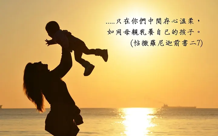 「只在你们中间存心温柔、如同母亲乳养自己的孩子。我们既是这样爱你们、不但愿意将神的福音给你们、连自己的性命也愿意给你们、因你们是我们所疼爱的。」(帖前二 7~8) 【每日一词】 「乳养」希腊原文是 thalpo,有珍惜,安慰,照顾的含意。因为帖撒罗尼迦教会的圣徒信主不到一年,如初生的婴孩。所以保罗以母亲喂养儿女的心情,给他们生命的供应、安慰和嘱咐。保罗因着疼爱他们的缘故,昼夜工作,辛苦劳碌,任劳任怨,甚至连自己的性命也愿意给他们。他的事奉是何等的圣洁,公义,无可指责。保罗向他属灵的孩子,可算是全人投入,全然摆上,实在是每一个事奉神的人的模范。主的工人若真的像母亲一样的对待圣徒,不知要造就多少人! 此外,保罗在牧养圣徒上,像母亲一般存心温柔,是何等美好!他的事奉,可作为世代教会主工人的榜样。保罗如何牧养他属灵的孩子呢?