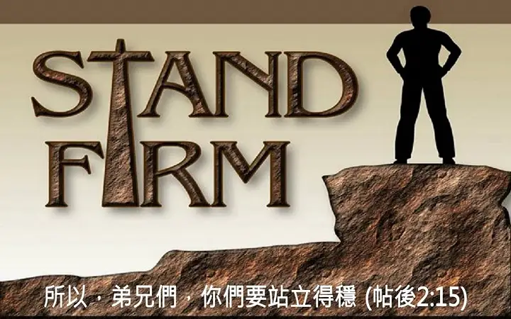 「主所爱的弟兄们哪,我们本该常为你们感谢神;因为祂从起初拣选了你们,叫你们因信真道,又被圣灵感动,成为圣洁,能以得救。神藉我们所传的福音召你们到这地步,好得着我们主耶稣基督的荣光。所以,弟兄们,你们要站立得稳,凡所领受的教训,不拘是我们口传的,是信上写的,都要坚守。」(帖后二13~15) 【每日一词】 「站立得稳」原文为 steko,是现在时式,意思是继续保持站立得稳的状态,乃是根据神启示的话语,直到主来。值得注意的是,在这一个非常重要的吩咐「要站立得稳」之前,有一个重要的祷告。这是每一位圣徒都当留意的,因为除非我们活在祷告之中,除非我们活在基督之中,除非我们活在圣灵之中,否则我们是无法站立得稳的。 在保罗的祷告中,将我们所蒙神的恩典和应许作了一个绝妙的总结,其中包括: