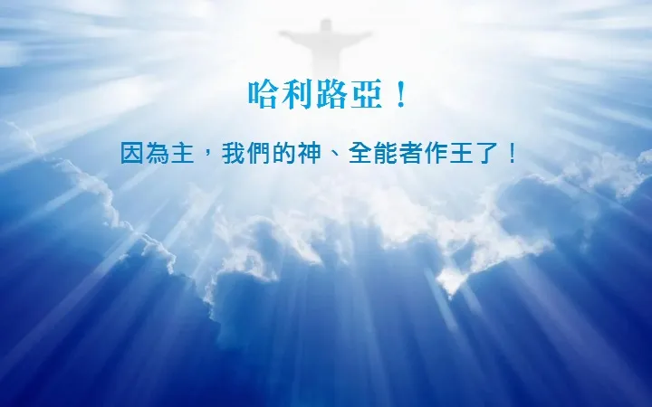 4. 「哈利路亚」,因主我们的神,全能者作王了。