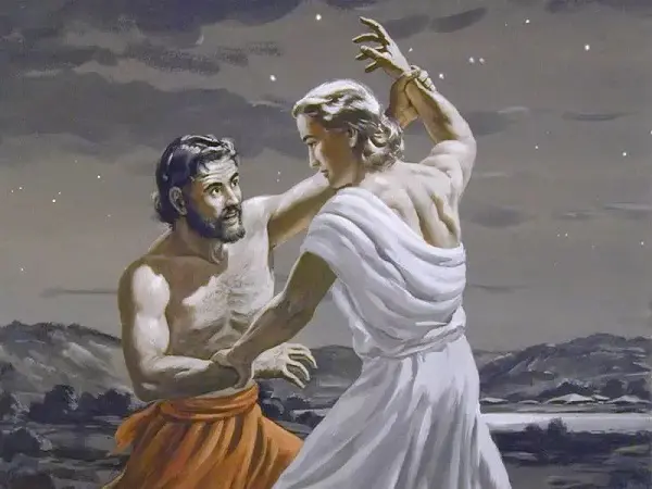 4. 雅各腿瘸了,因他的肉体受了神的对付。雅各的大腿筋被神一摸,结果身上留下被对付的记号。从那一天起,他的大腿就瘸了。