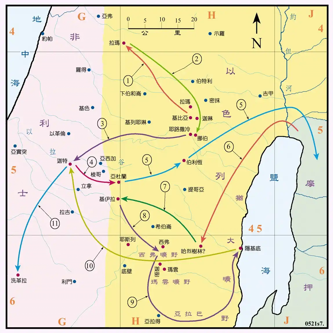 9. 从西弗旷野到玛云矿野从西弗旷野、经亚拉巴、玛云的旷野,到了隐基底的山寨