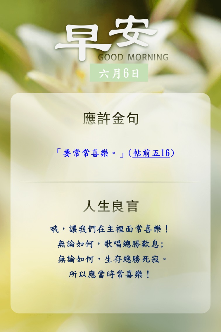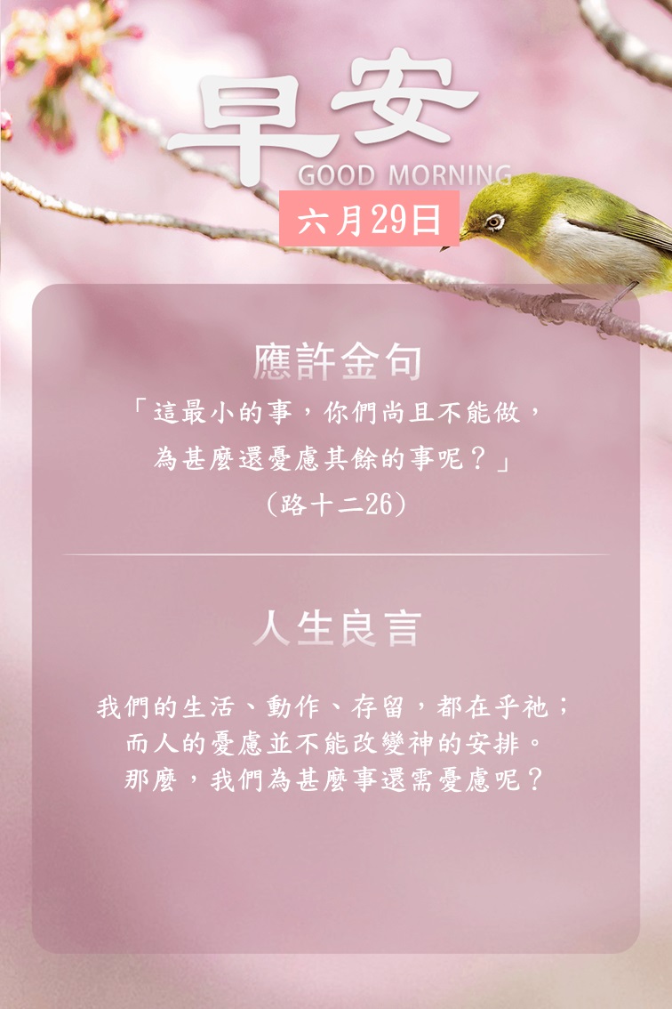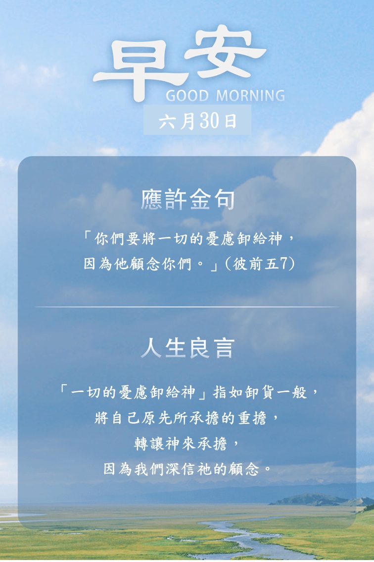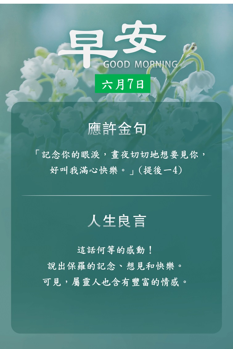 每早晨,向神祈求:「求你記念向你僕人所應許的那叫我有盼望的話。」