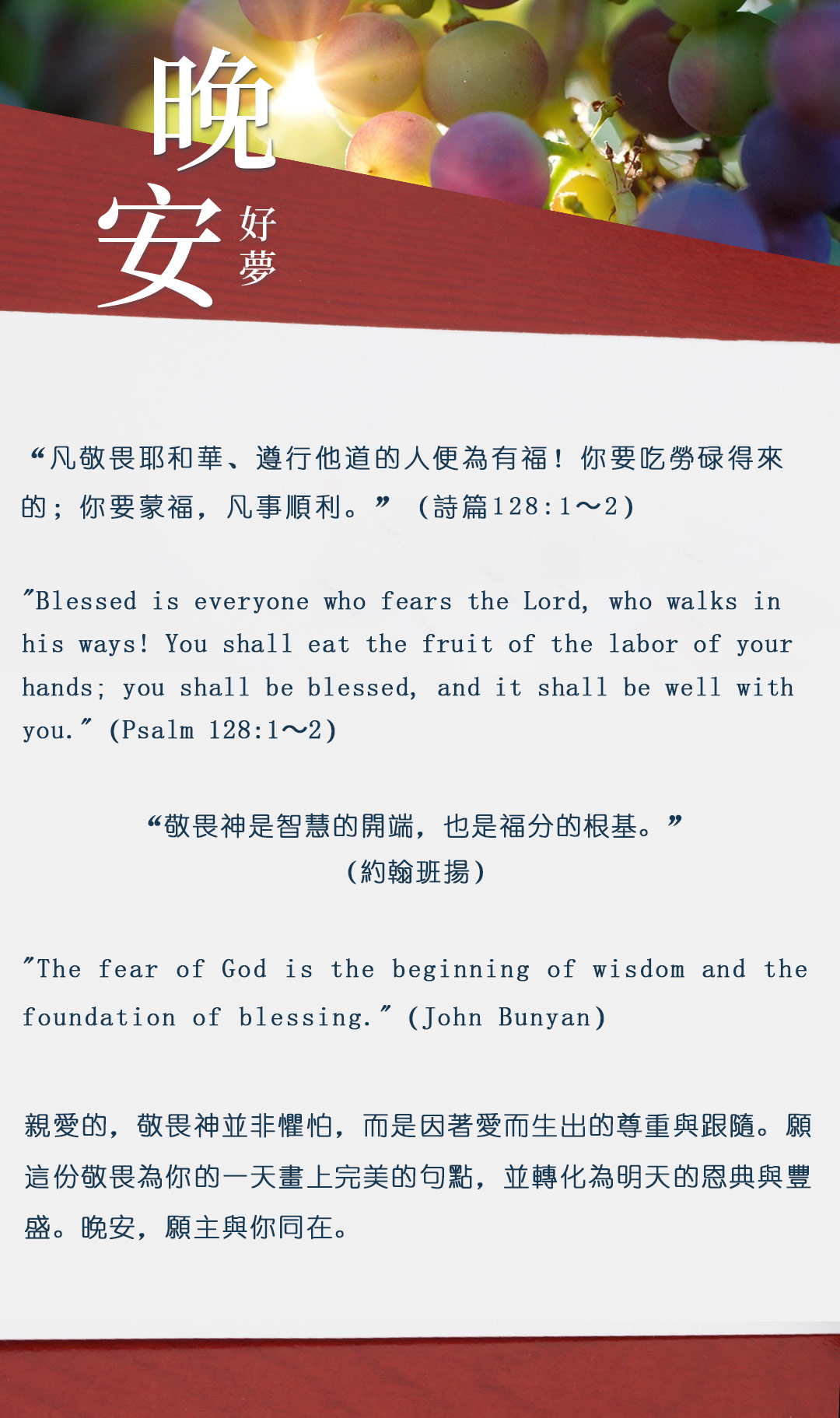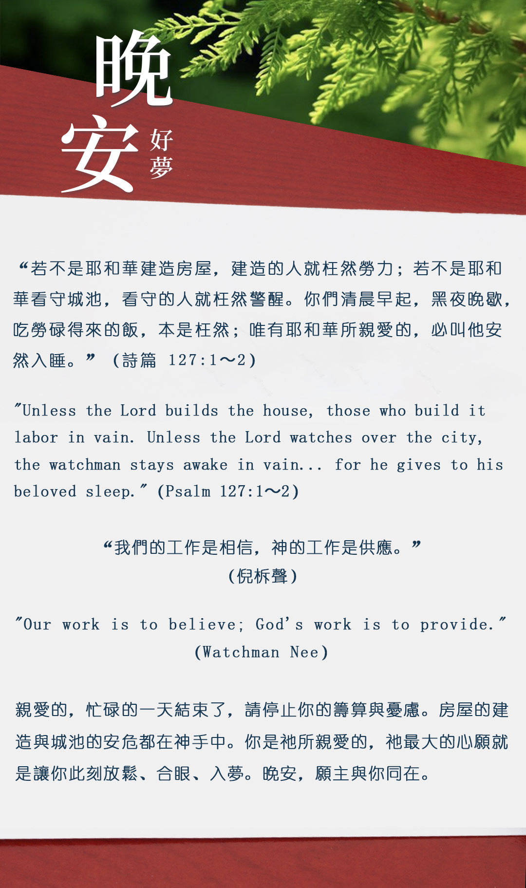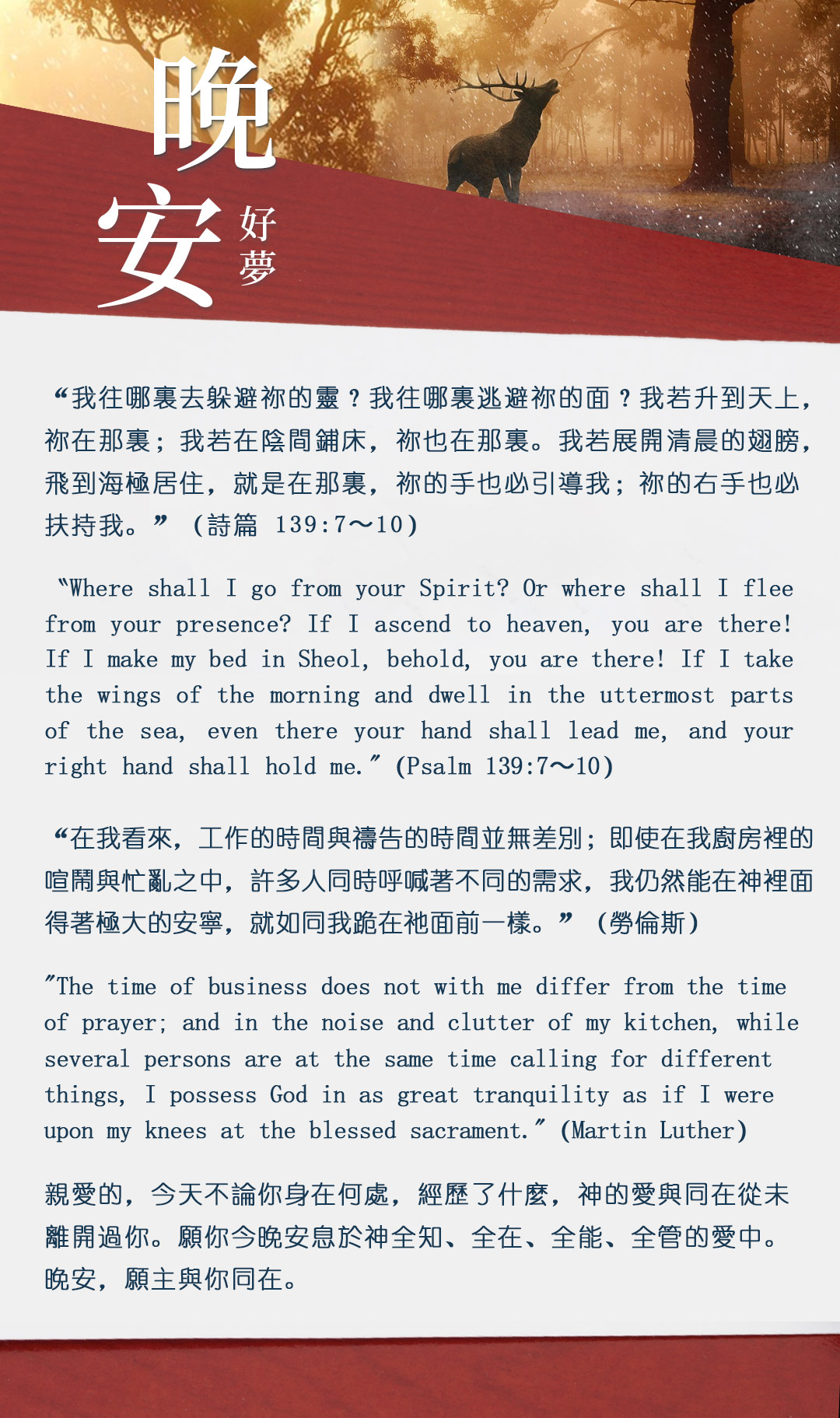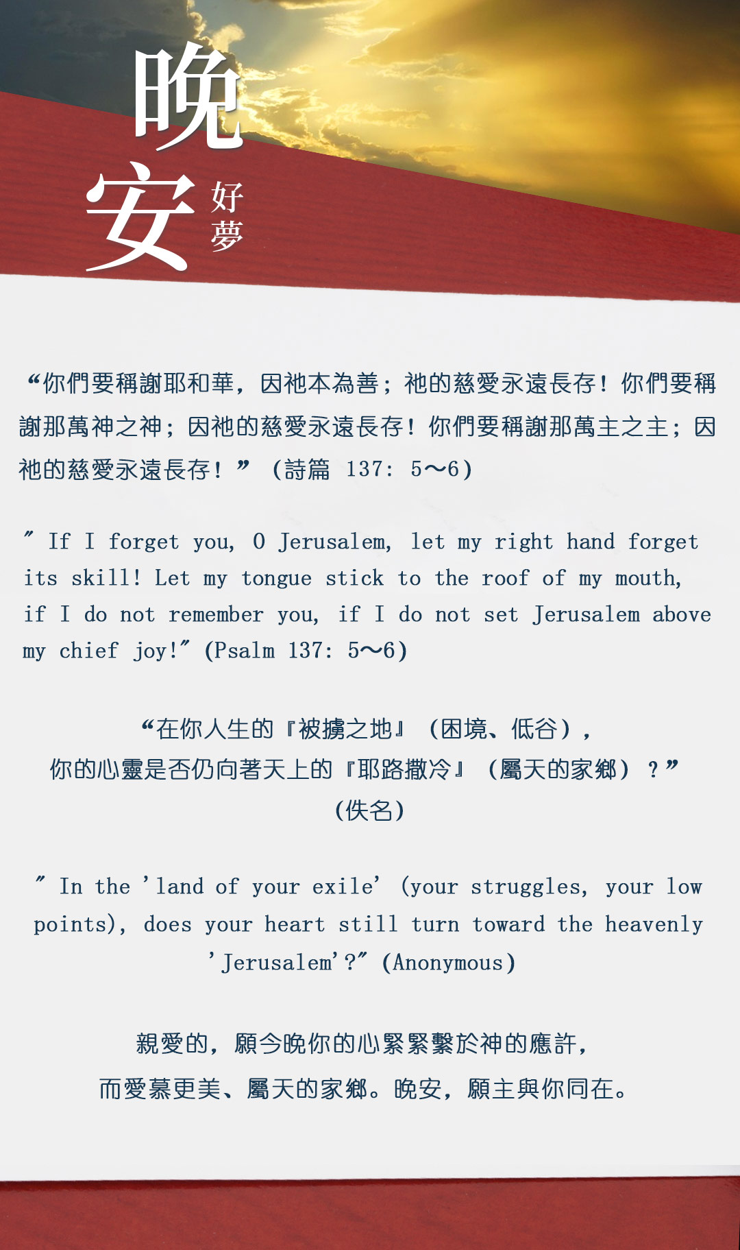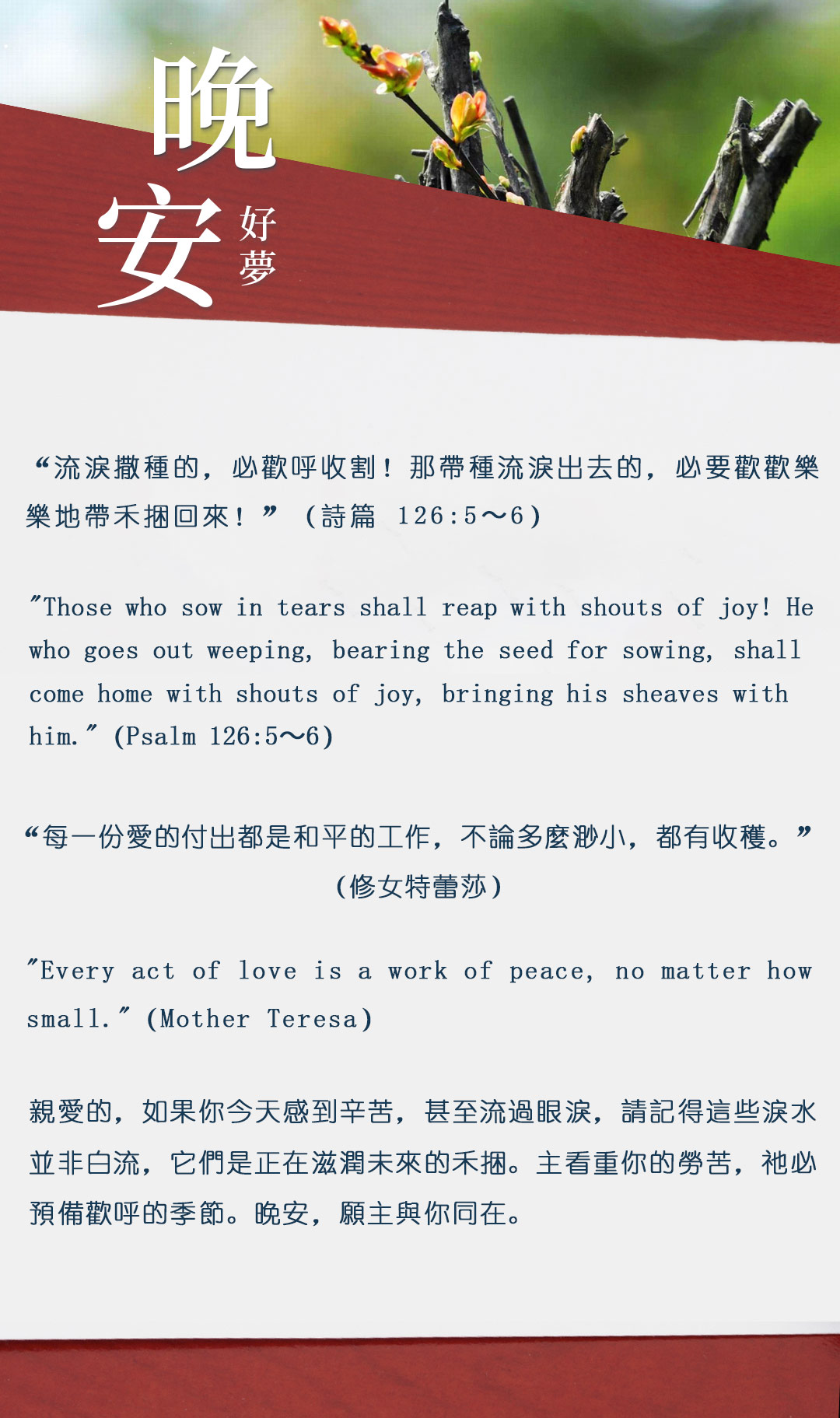 与大家分享属灵名言,愿主耶稣基督的「恩典」与「平安」伴你微笑入眠。晚安!