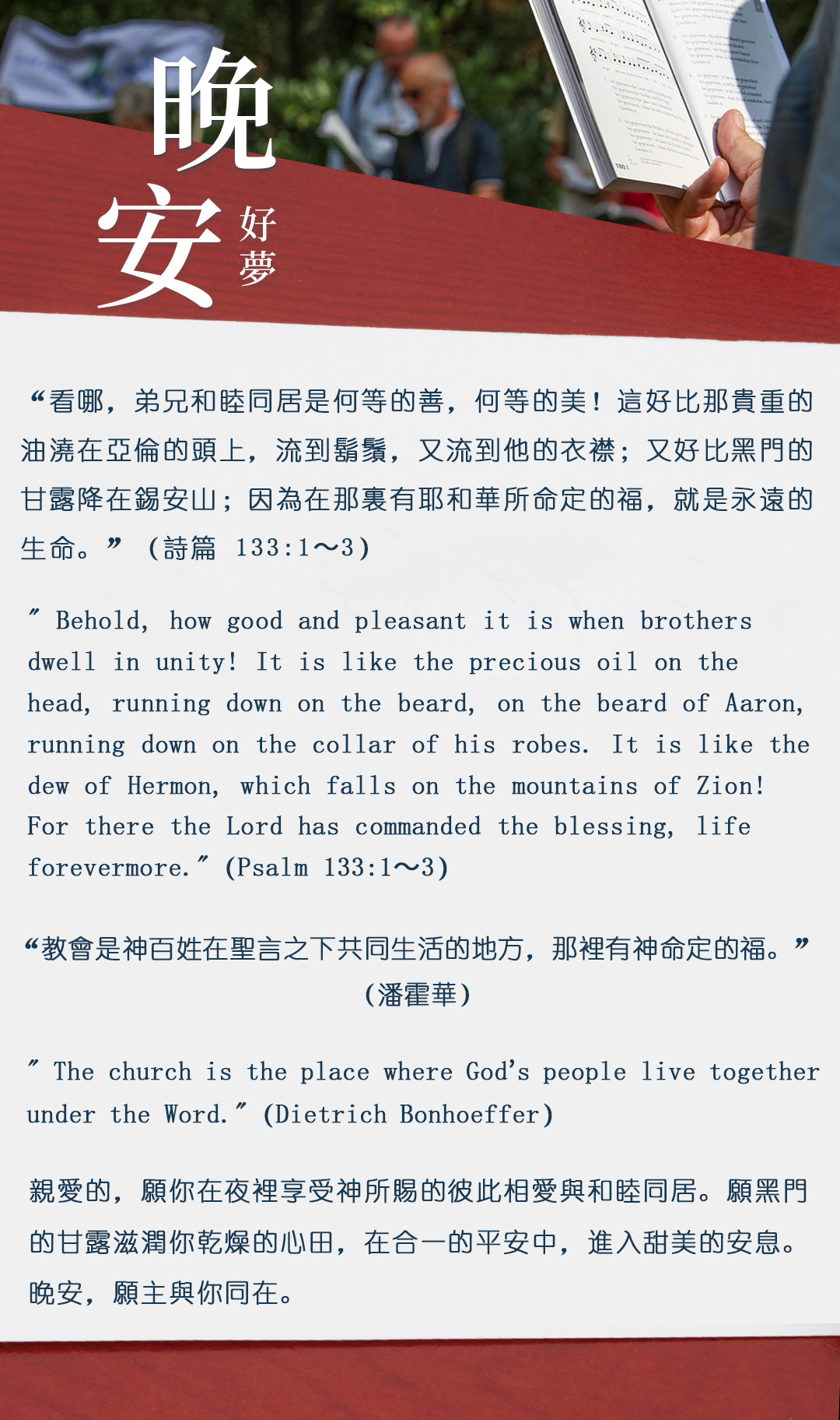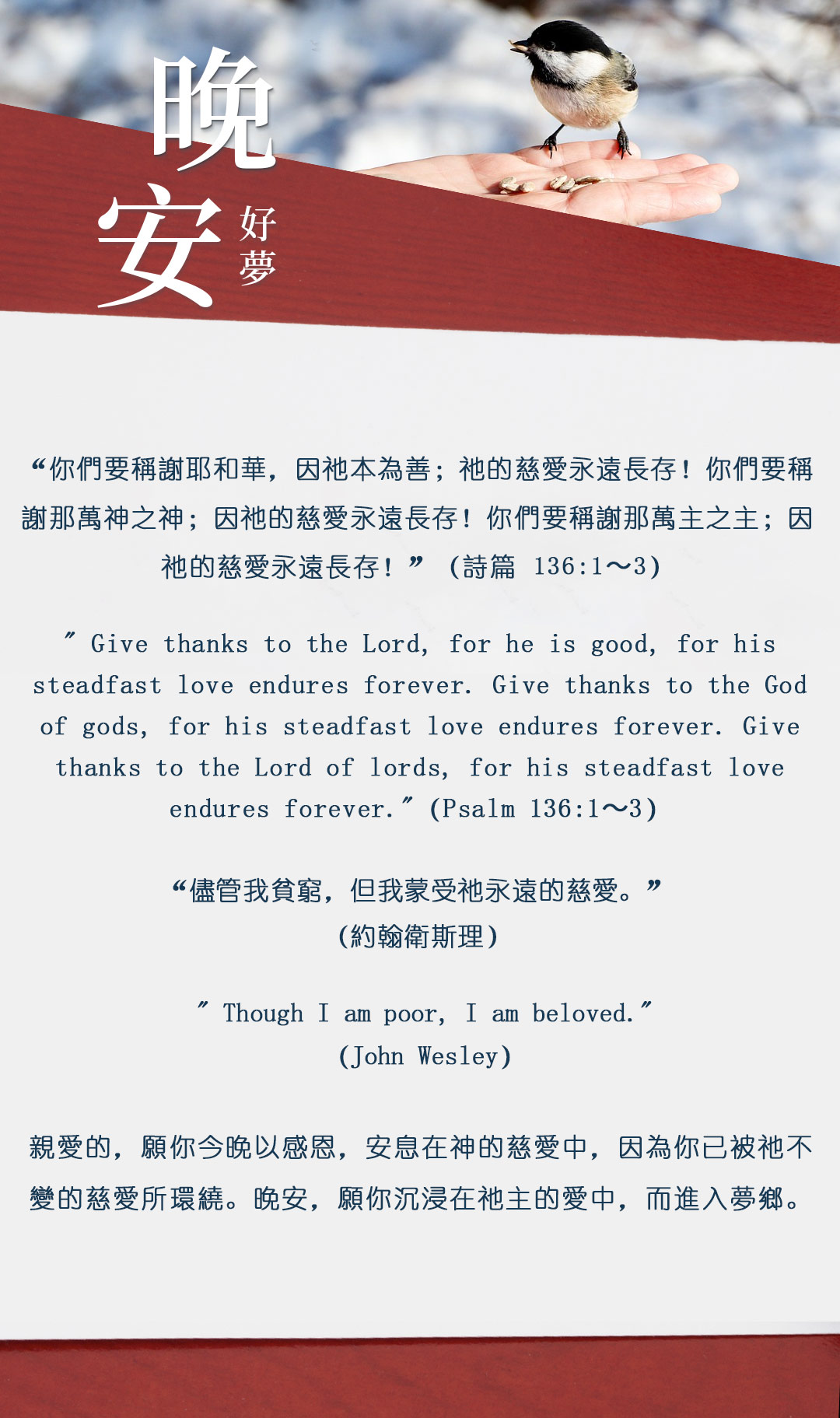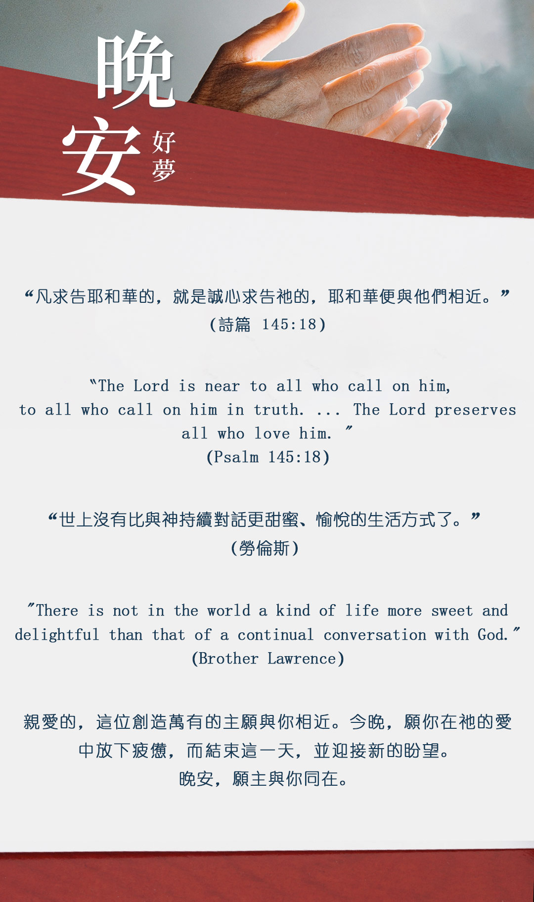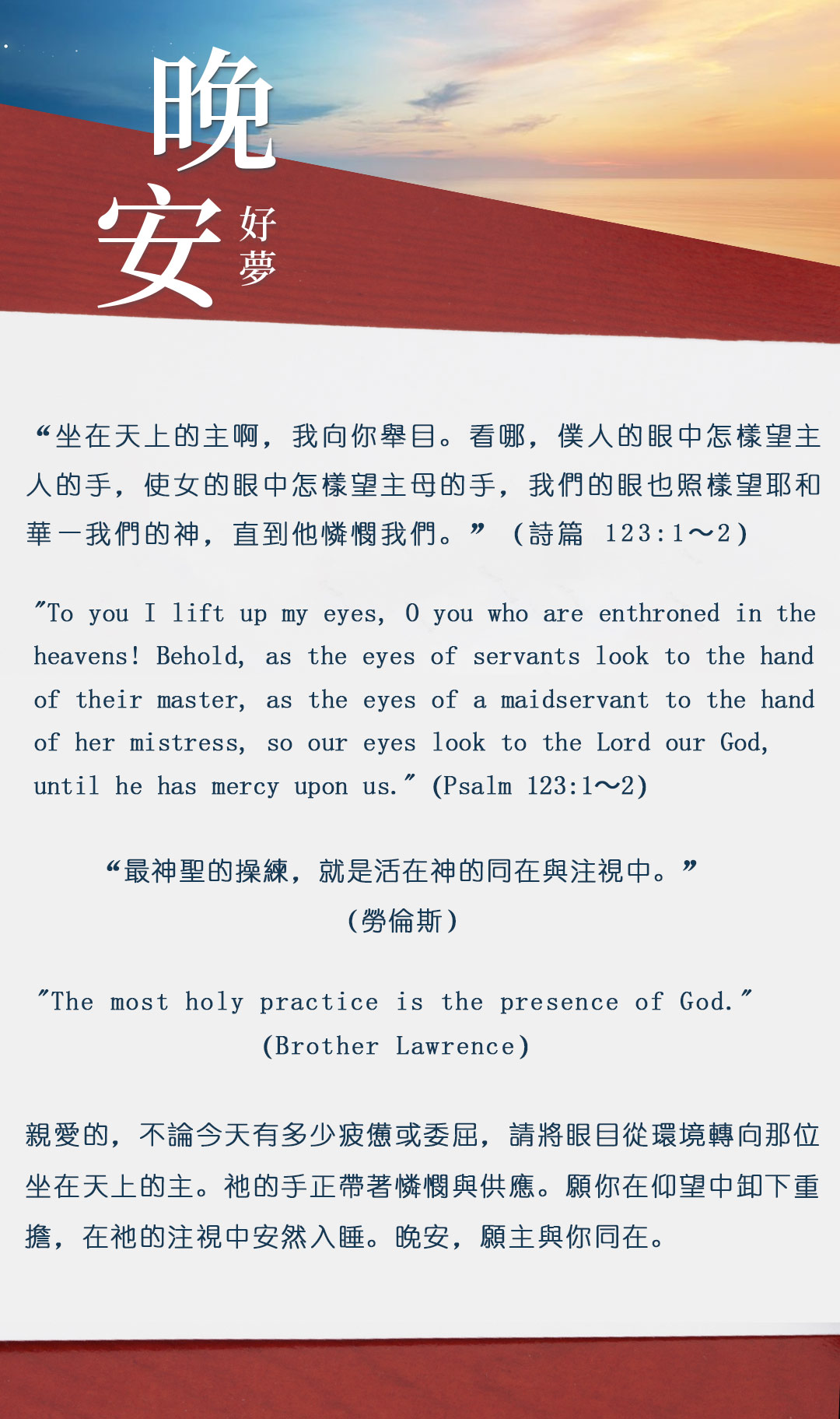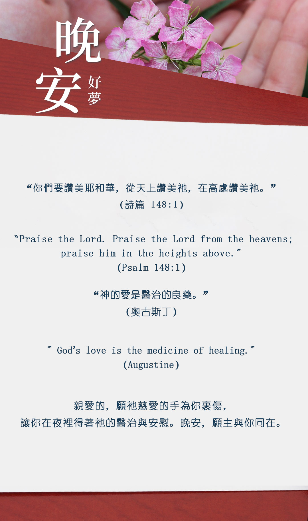 与大家分享属灵名言,愿主耶稣基督的「恩典」与「平安」伴你微笑入眠。晚安!