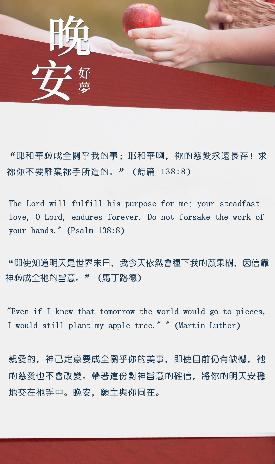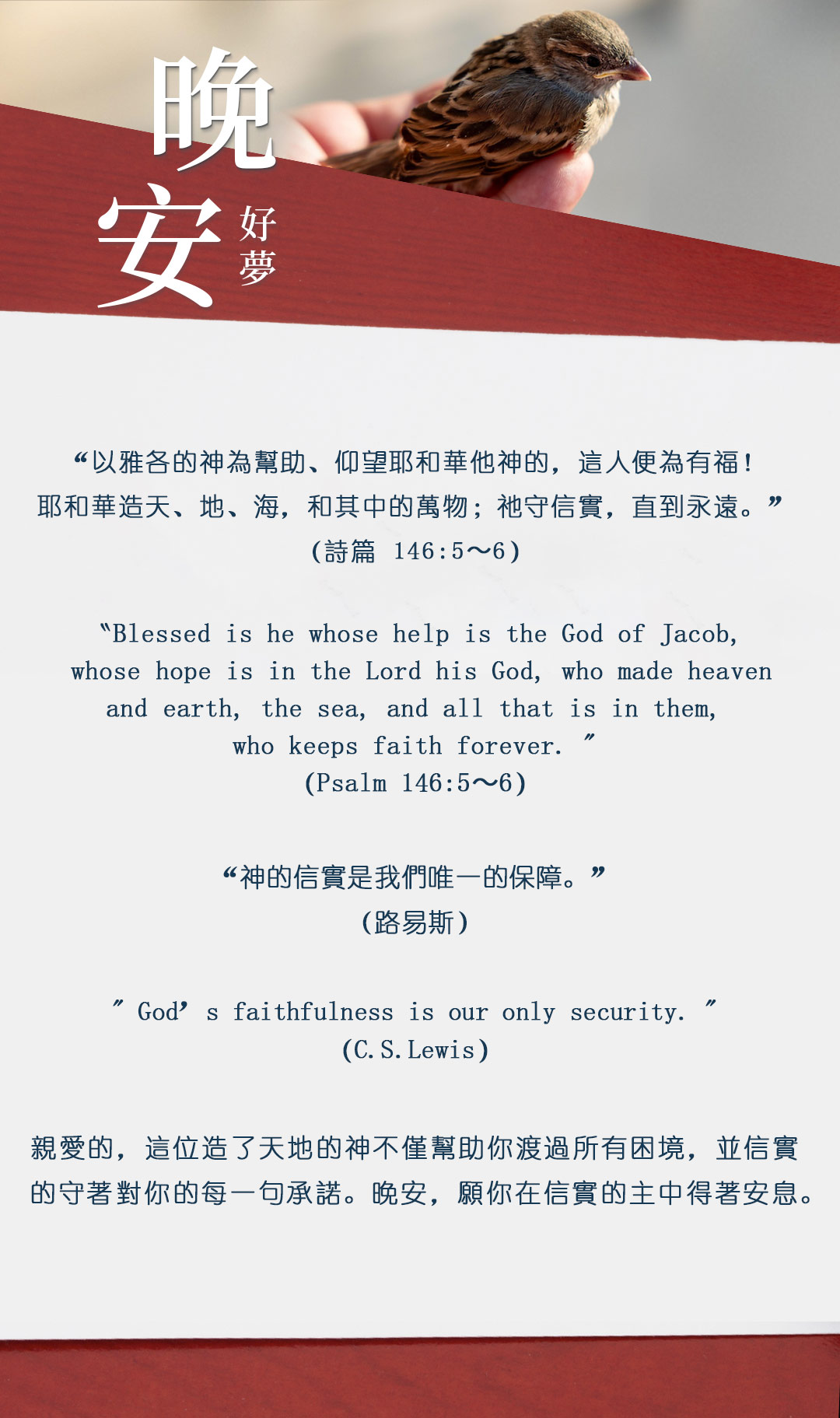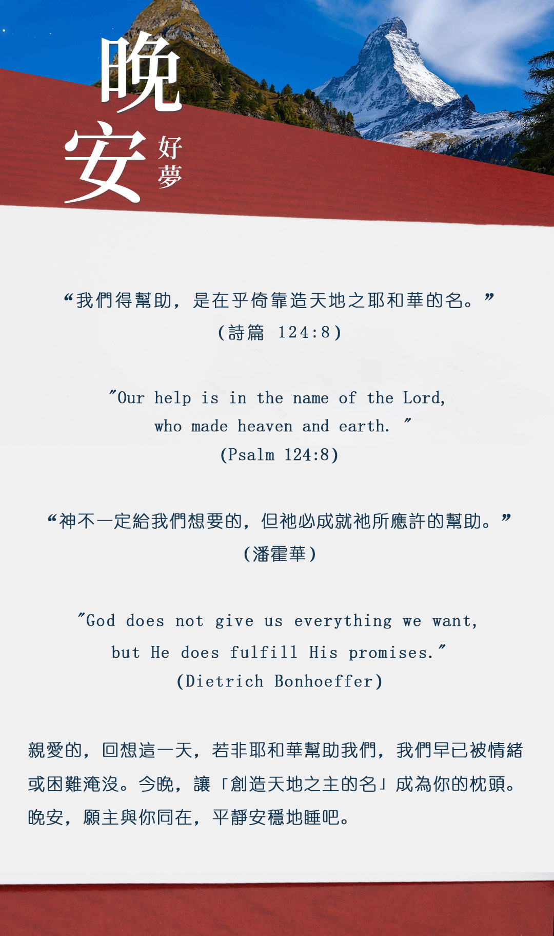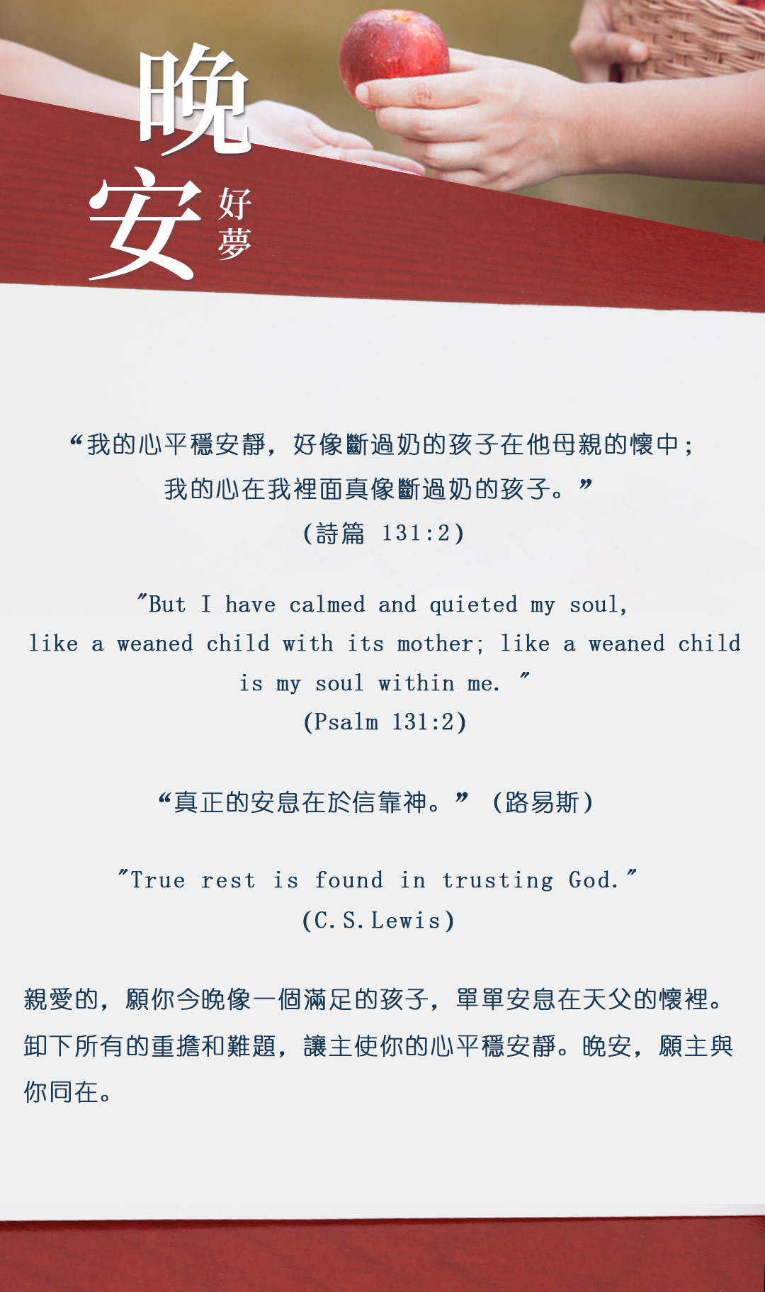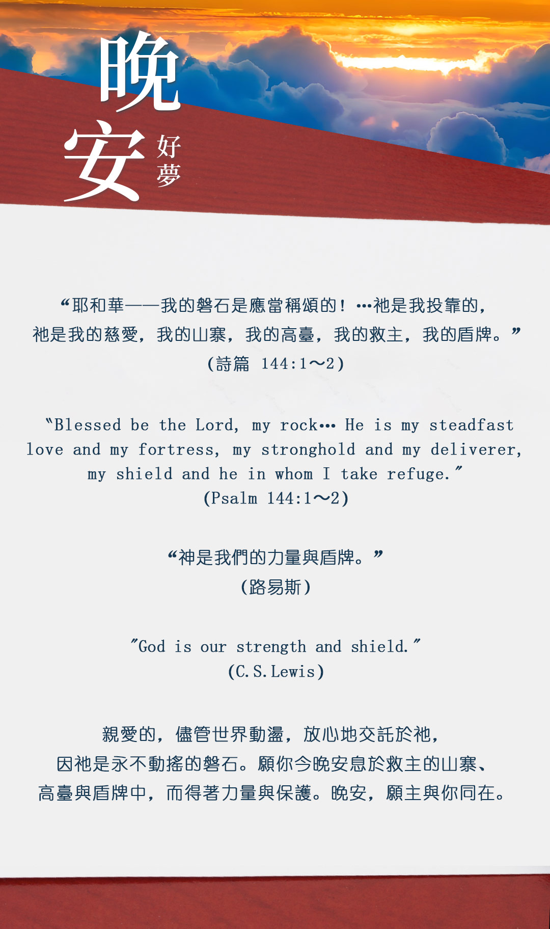 与大家分享属灵名言,愿主耶稣基督的「恩典」与「平安」伴你微笑入眠。晚安!
