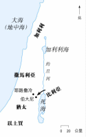 耶穌在約旦河受了約翰的洗禮,又在曠野受撒但的試探(參可1章地圖)以後回到加利利,去拿撒勒,迦拿,迦百農,再回到耶路撒冷過逾越節。