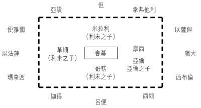 摩西、亞倫、米利暗、約書亞、迦勒、以利亞撒、可拉、巴蘭 |